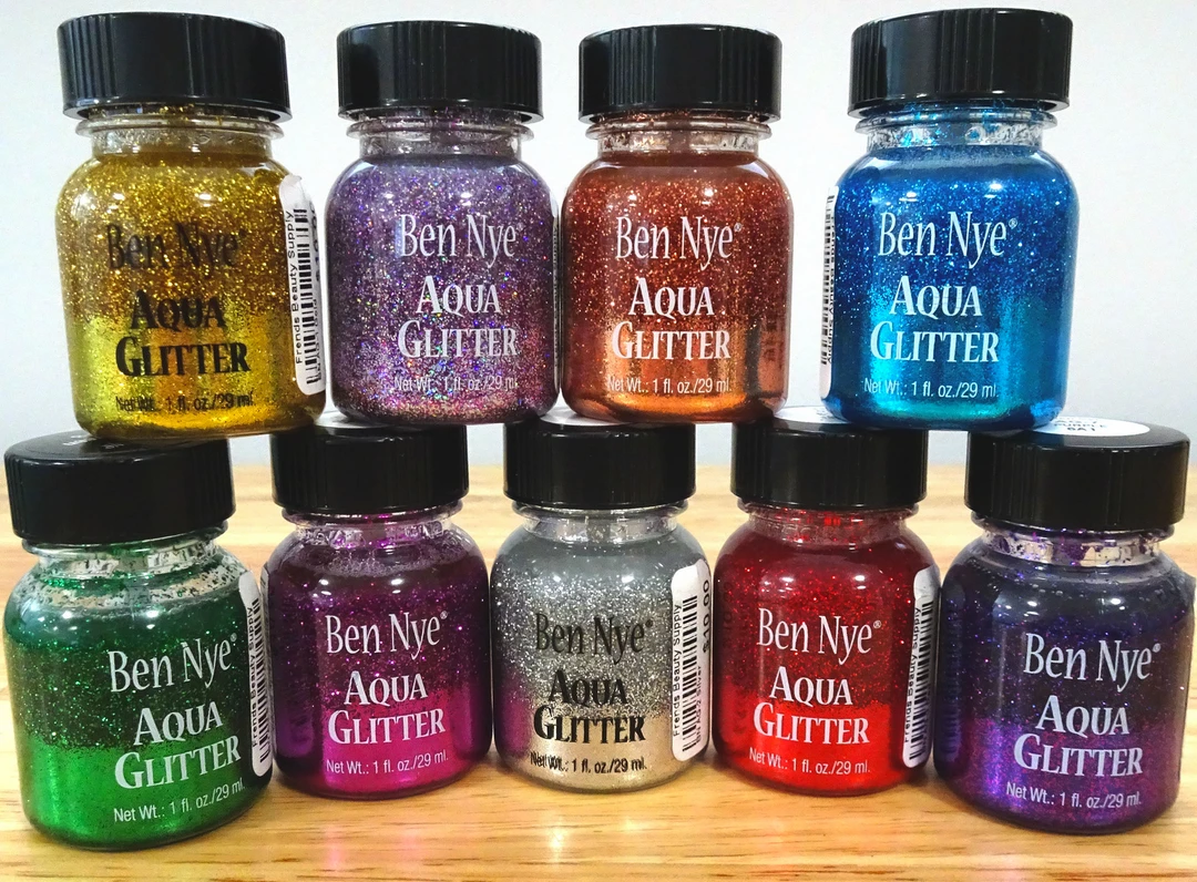 Aqua Glitters are Sparklers Glitters that we have mixed to an ideal ratio with a liquid base. The 10 available color options are easily customizable by adding in any other glitter shade of your choosing. They can be used to provide stunning detail to makeup designs.